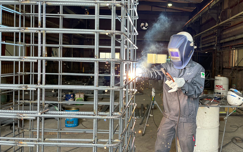 力仕事というより、鉄筋を組み立て溶接していくので繊細さが大事だと思います。ミリ単位で鉄筋の長さや角度が変わるのですごく難しいですが…